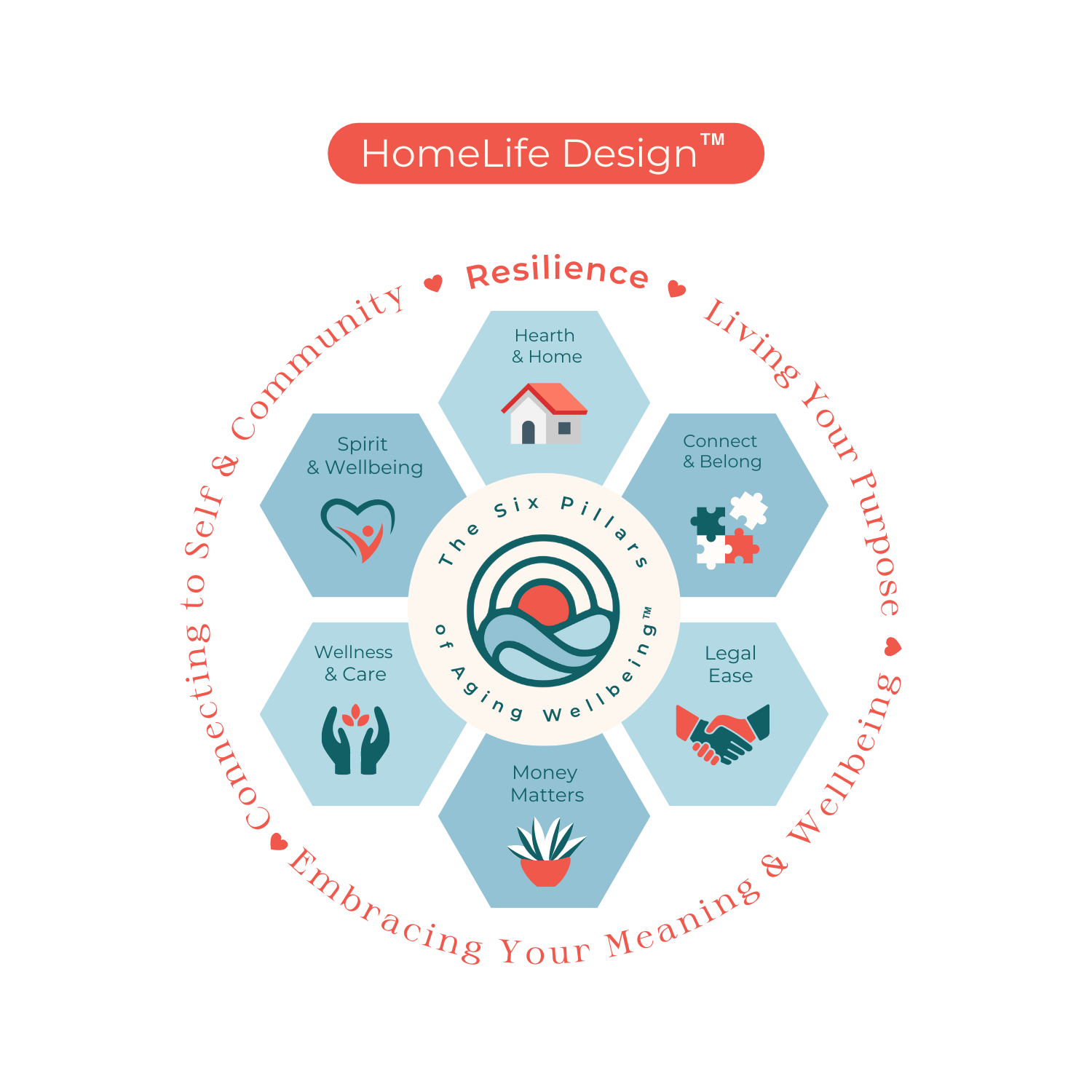 Mary Jo offers counseling for life design and long-term care planning through her HomeLife Design™ program powered by The Six Pillars of Aging Wellbeing™ framework.